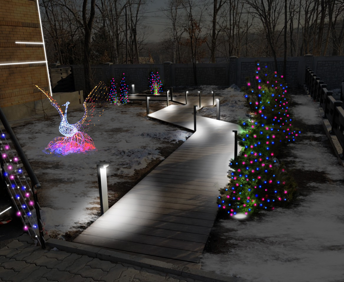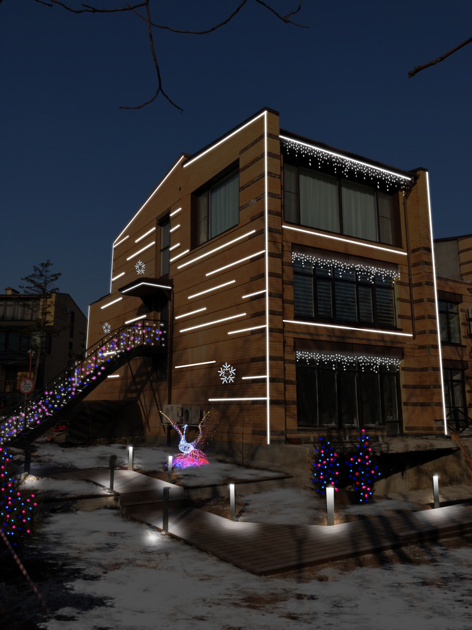 Для выполнения работ по подсветке частного дома мы используем высококачественное светодиодное оборудование, которое прослужит Вам до 5 лет и более. Светодиоды не теряют своих свойств с годами и, при условии правильной эксплуатации, позволяют наслаждаться подсветкой в течение многих лет. Важно учитывать, что приморский климат весьма суров и, в отличае от американских зеленых лужаек, здесь зимой стоят крепкие морозы и периодически выпадает снег. Весной, летом и осенью погода так же периодически приподносит сюрпризы, которые могут негативно сказаться на иллюминации. Именно поэтому мы рекомендуем демонтировать гирлянды после окончания праздников или с наступлением весны, чтобы продлить срок жизни гирлянд и сохранить их в рабочем состоянии на последующие сезоны.