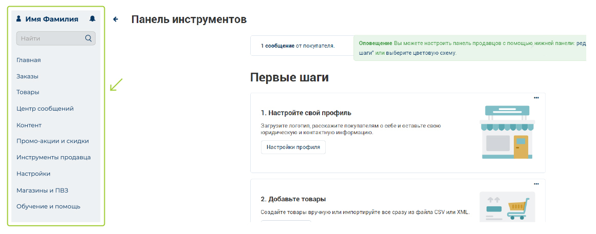 Боковая панель. Обычно на таких панелях располагаются меню или другие элементы навигации
